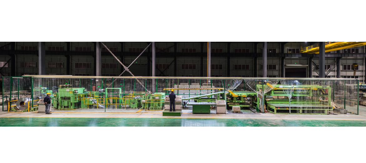 KP-002開平機(jī)組,系進(jìn)口的專業(yè)超薄板鋼卷整平裁剪設(shè)備。該機(jī)采用性能優(yōu)越的日本“RELIANCE”直流控制系統(tǒng),主要電機(jī)、電氣元件、軸承等零件均為高品質(zhì)名牌元件,確保了該機(jī)高速、穩(wěn)定的運行。加工原料鋼卷重量最大可達(dá)7噸,直徑1500mm,寬度800mm,有19輥精整機(jī)構(gòu),產(chǎn)品平坦優(yōu)良;該機(jī)組還配備了日本專利的高速連續(xù)回旋式剪床,鋼板經(jīng)NC計算機(jī)控制定尺裝置精密計算,產(chǎn)品精度優(yōu)異,生產(chǎn)效率一流,可裁剪0.25-2.0mm厚度的鋼板,疊料站可收150mm-5000mm的板材,并配備平行分離式無傷收料托架,從而使產(chǎn)品擁有整齊的外型。主要加工冷軋、鍍鋅、烤漆、馬口鐵、不銹鋼、鋁合金、銅合金等材料。